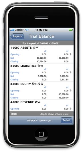 3. Trial Balance. This shows how the Trial Balance report will look like on iPhone. It handles text in any language. |