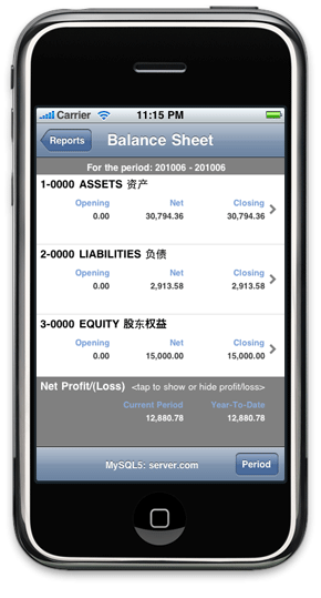 | 7. Balance Sheet. This is how the Balance Sheet looks like on iPhone. The Net Profit or Loss figures are at the bottom. |