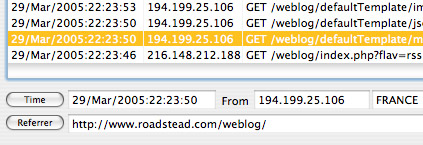 The Search Field remembers your most recent searches. You can now double-click on a log record line to launch the web page of a referrer. And, there's a new Country Field when you look at a log detail. (Download 1.0.5 from here).