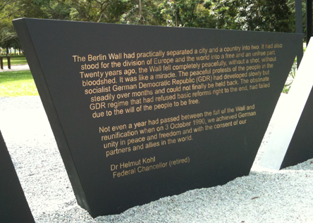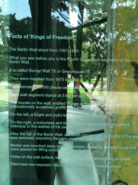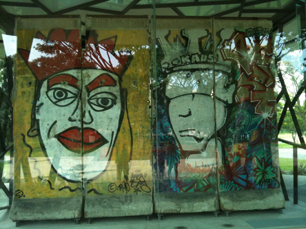 Fragments of the Berlin Wall at Bedok Reservoir, depicting two kings, one bright and joyful, the other blind to the wishes of his people :