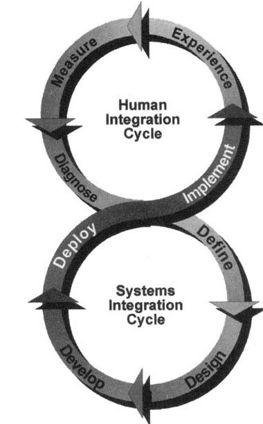 I've just finished reading a compilation of the speeches and writings of Mr Tan Kim Lian, CEO of NTUC Income, Singapore's largest provider of general and health insurance, and third largest provider of life insurance. Having started in 1970 with a share capital of only S$1 million, its asset base now total S$11 billion. It was a surprisingly enjoyable read because it's clear within the first few pages that, here, we have a brilliant mind - a rare entreprenurial spirit in a government-linked company. He was constantly exhorting people to "do, learn, adapt" and this reminded me of the diagram that Burke and Morrison drew in the "Business @ the Speed of Stupid" book that I reproduce below : I like this because it pulls the users and systems developers into a cycle that allows each to do, learn, and adapt from working with the other. It's the yin and the yang of systems development.
