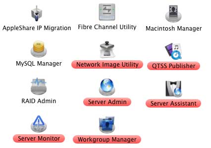 It doesn't take too long to install the Panther Server. Even on an old iMac. Most of the stuff you'll find loaded on the hard disk will be familiar to any Mac user - except for the server-specific applications you see below.