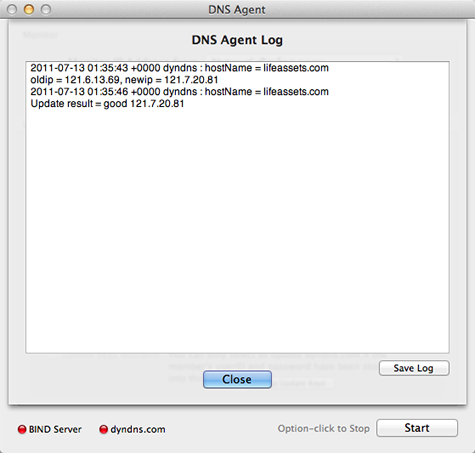 Release Log 6.0 October 5th 2015. DNS Agent for El Capitan released. 6.0.1 October 5th 2015. Can now also use the “Client Updater Key” that you generate on dyndns.com, in place of the dyndns account password. 6.0.2 October 12th 2015. Solved a problem whereby DNS Agent may not update dyndns.com again after it had already made one failed update. 6.0.3 October 13th 2015. DNS Agent now displays the current IP address, even if the IP address monitoring daemon is not running or has not yet been started. 6.0.4 October 15th 2015. Minor bug fixes including for the De-Install dialog box. 6.0.5 October 23rd 2015. Added support for easydns.com |