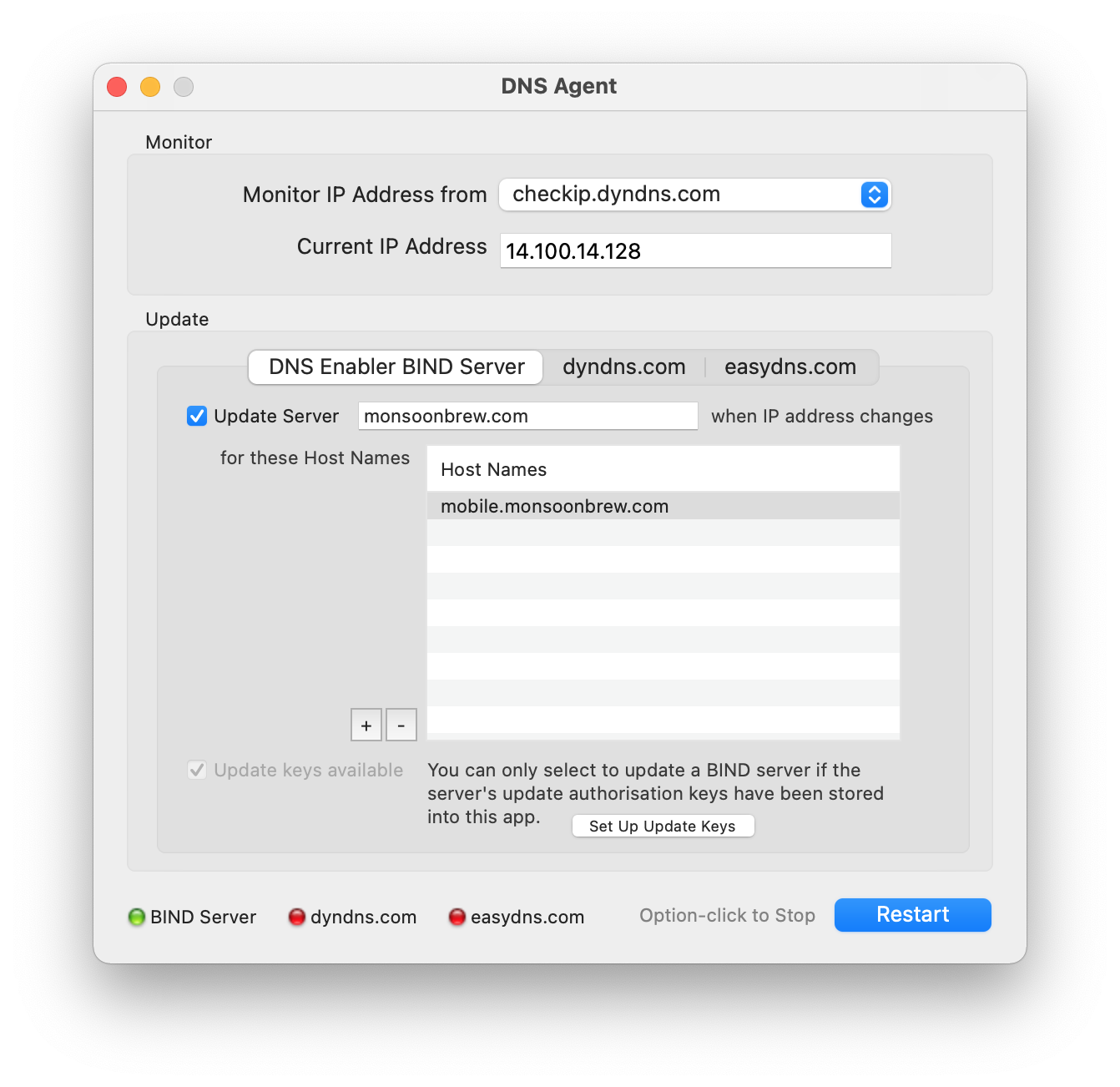 DNS Agent is able to update three kinds of DNS Servers — BIND name servers set up by DNS Enabler, or dyndns.com and easydns.com servers.