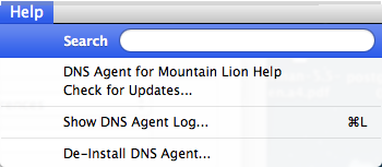 The Help menu also contains a link back to this DNS Agent for Lion web page and it can be used to check the web site for new versions.
