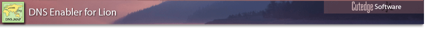 The Help menu also contains a link back to this DNS Enabler for Lion web page and it can be used to check the web site for new versions. Release Log 5.0 July 14 2011. DNS Enabler 5.0 for Lion released. 5.0.1 July 24 2011. Fixed a problem whereby the dyndnsupdate.key used to support dynamic updates cannot be found on a Lion system with a case-sensitive file system. 5.0.2 July 1 2012. Fixed the "EDNS UDP packet size" problem. 5.0.3 July 31 2012. Fixed a bug with the Allow Dynamic Updates checkbox not synchronising with the actual state of the system.