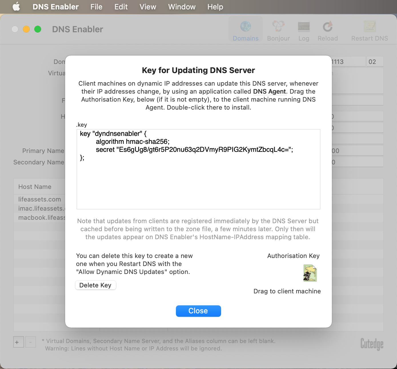 In order to establish that it has the necessary authorisation to update the DNS Server, the DNS Agent needs to have an authorisation key installed that it has obtained from the server.