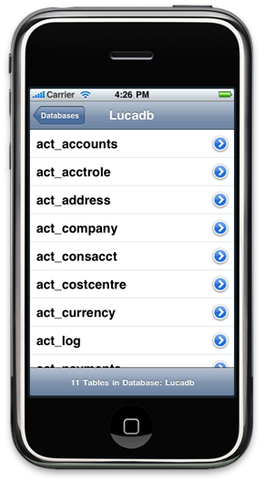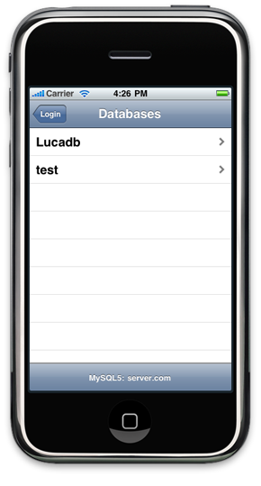 2. List of Databases. There are two here and the user selects Lucadb by touching it. |