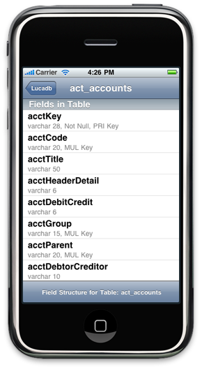 | 4. Data Structure. Examine the table's data structure. You get here by tapping the table's blue detail disclosure button. |