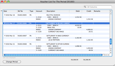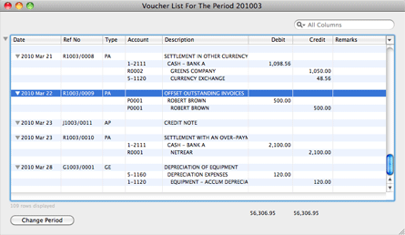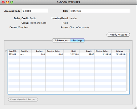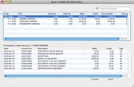 This allows you to see the transactions for the account as a whole, as well as for the individual sub-accounts. You can get at the vouchers that contribute to each line item, by double-clicking on item line.