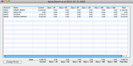 The Aging Report gives a consolidated view of the Accounts Payable and Accounts Receivable situation.