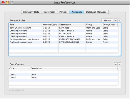 Note that when Luca sets up the initial Chart of Accounts, appropriate roles have been set up for a basic set of special accounts. You can modify this set but you need to be careful and it may not be possible to change things once you have transactions posted to each account.