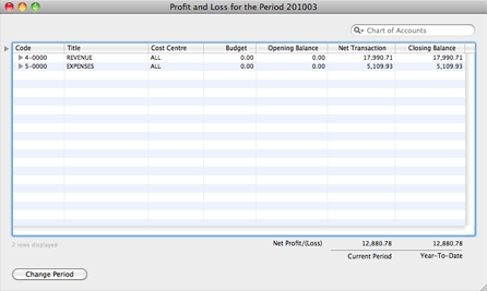 Transactions can be viewed by individual accounts and by different accounting periods by drilling into the Chart of Accounts.