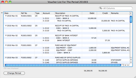 The following are transactions created in the Luca demo database. You may view the list of transactions in the form of double-entries from Journal > All Vouchers.