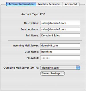 This is how you manage the sales@domainB.com account using Mail.app :