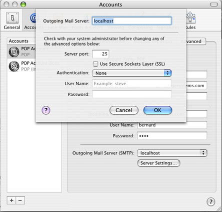 In summary, this is what you're doing. You set up your POP or IMAP accounts so that replies coming back to you will reach you on your mail client. But the messages sent out your Mac via localhost will be despatched directly to the recipients.