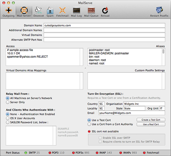 The OS X built-in user accounts method, together with SSL (which we will cover later) constitute a safe, simple, and effective mechanism for implementing security for the mail server.