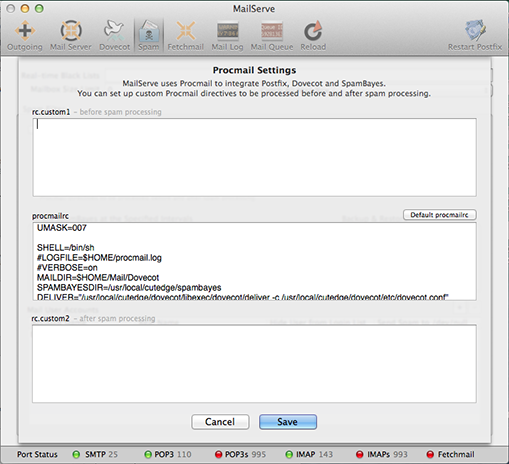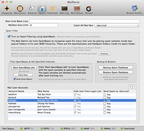 Please note that MailServe's spam fltering mechanism needs Dovecot to be running.