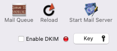 From version 15.1.4, DKIM will also work with Additional Domains. If Enable DKIM is on, just enter the other domain names that your mail server will host into the Additional Domains field and Restart Mail Server. MailServe will set up the mail server to sign keys for the other domains in addition to the primary domain.