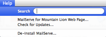 The Help menu also contains links to this MailServe for Lion web page and they can be used to check our web site for new versions.