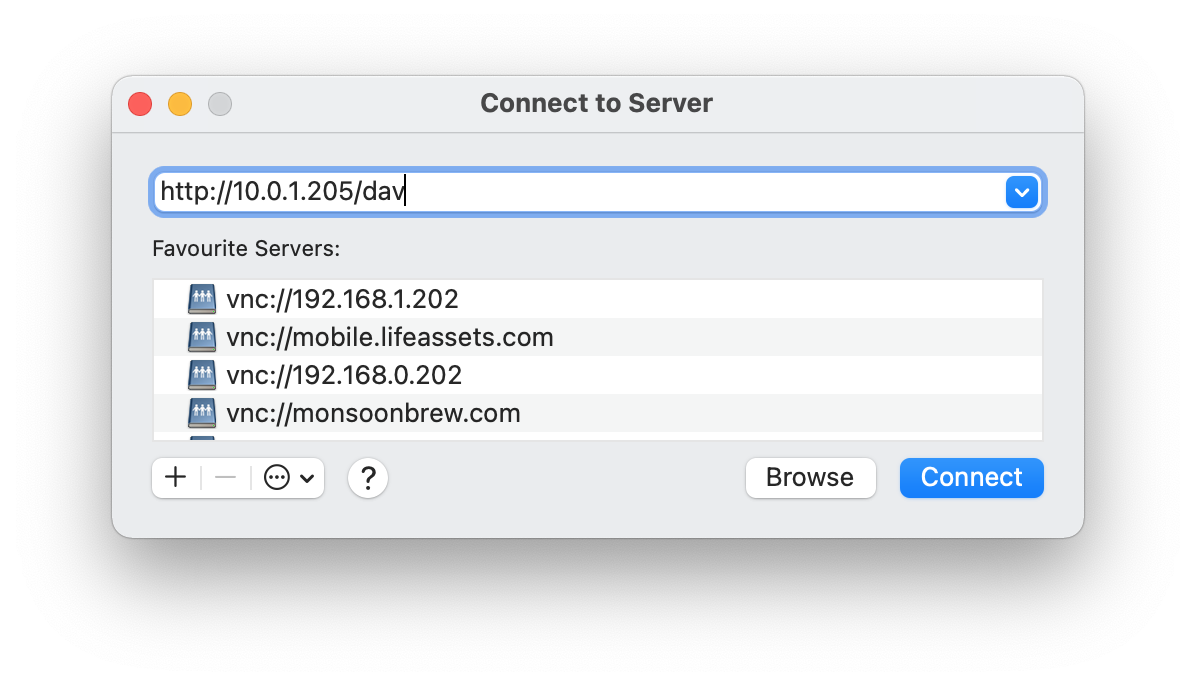 You can make the WebDAV folder act like your very own iCloud Drive. This is how you can connect to it remotely, directly from the Finder. From the Finder menu, choose Go and then Connect to Server.