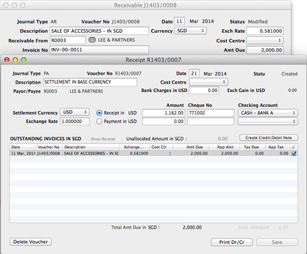 Settlement In Base Currency The following is an example of an invoice billed in a foreign currency, and settled in the base currency.