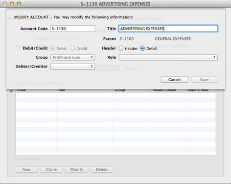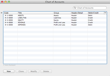 The Chart Of Accounts You can create new accounts and delete, clone and modify existing accounts.