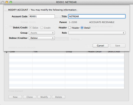 The Debtor or Creditor Account The following is an example of a Debtor or Creditor (i.e., Customer or Vendor) account.