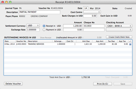 Settlement With Over-Payment In Luca, when a cheque is received with the amount greater than the invoice amount, a Credit Note can be generated to record the over-payment by the debtor (customer). Similarly, when a payment is made with the amount greater than the amount owing to the creditor (vendor), a Debit Note can be generated.