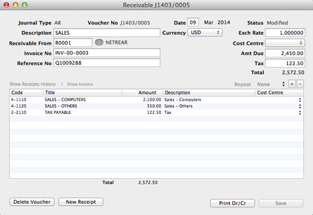 Receivables (Credit Sales To Customers) Credit sales and services to customers are entered as Receivables in Journal > Receivables.