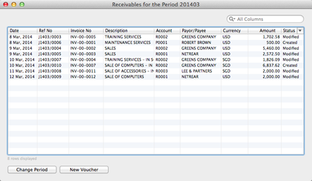 Financial Periods The initial example vouchers are created for the accounting period in which you created the demo data. You may set the default accounting period range in which you are running your accounting reports and statements :