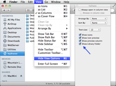 This Documents folder is found in the user's Library folder (~/Library), which is hidden, by default. To unhide the Library folder, go to the user's home folder, choose View > Show View Options from the Finder, then check the box for "Show Library Folder”. You will then be able to navigate to the Documents folder. You will find this step useful when, for e.g., you are making a backup copy of Lucadb database.