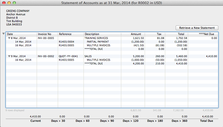 Statement Of Accounts Double-clicking on the debtor's or creditor's aging record will get you the Statement of Accounts for that debtor or creditor. Alternatively, the Statement of Accounts can be launched by choosing Analysis > Statement of Accounts from the Menu Bar.