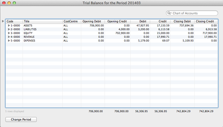 Analysis Transactions entered in the system can be viewed in different consolidated forms for analysis. Financial Statements As the double-entry postings are immediate, the Trial Balance, Balance Sheet and Profit and Loss statements can be viewed at any time. The following are examples of a Trial Balance and a Profit and Loss statement. The Profit and Loss statement shows the up-to-date Net Profit or Net Loss for the current period and year-to-date.